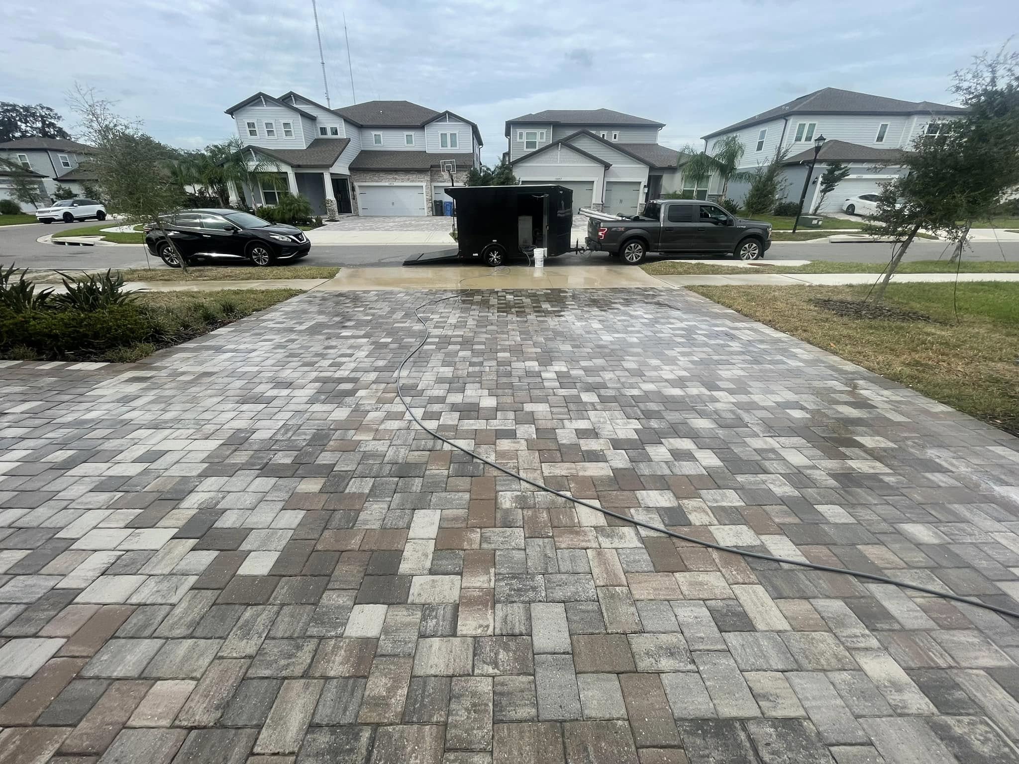 Clean and Seal Wesley Chapel Pressure Washing Service & Paver Sealing specializes in high-quality paver cleaning, paver restoration, joint sand installation, and premium sealing services for residential and commercial properties throughout Wesley Chapel and the greater Tampa Bay region. Florida’s climate is particularly harsh on paver systems—constant sun exposure, humidity, rainfall, and irrigation overspray cause fading, sand loss, weed growth, and surface deterioration. Our multi-step process restores the natural beauty of your pavers while providing long-term protection that enhances durability and curb appeal.